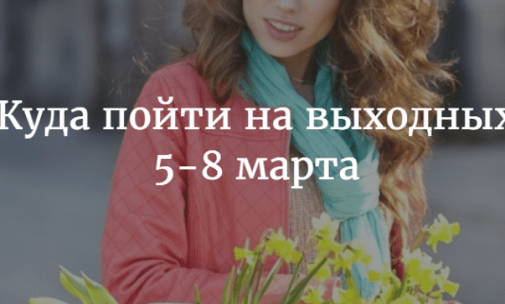 Весна хоть началась проливным дождем, но встретить ее достойно помогут сразу 4 выходных в честь Международного женского дня. Пользуясь случаем напоминаем, что у нас готовы поздравления с 8 марта, а также ответы на вопросы, что подарить подруге на 8 марта, что подарить бабушке на 8 марта и даже, что подарить учителю на 8 марта! После того, как с подарками вопрос будет решен, можешь смело изучать нашу афишу мероприятий на 8 марта и отмечать, отмечать и еще раз отмечать!
