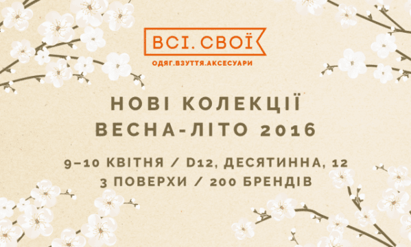 Напомним, что вскоре «Всі. Свої» отправится во всеукраинский тур. Этой весной маркет посетит Одессу, Харьков и Днепропетровск. Уже 16 и 17 апреля «Всі. Свої» представят в Одессе более 150 брендов одежды, обуви и аксессуаров на любой вкус и кошелек.