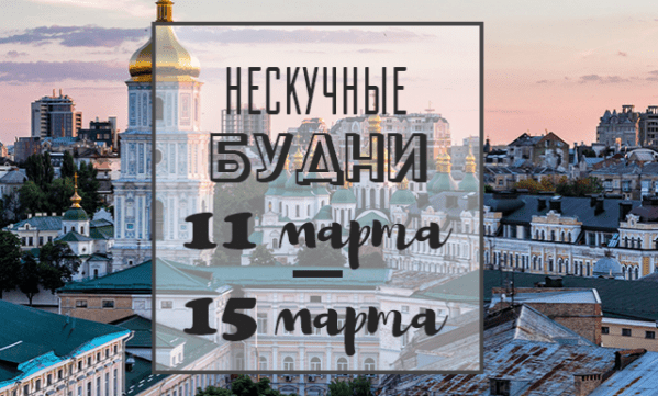 Куда пойти в Киеве на неделе? Ведь на улице заметно потеплело и, как сказал классик, запахло весной. Таким образом, нужно позаботиться о том, чтобы досуг был проведен с пользой и удовольствием. Так давайте разбираться, какие интересные события есть в Киеве в будни с 11 по 15 марта. Смотрите нашу афишу мероприятий в Киеве на неделю.