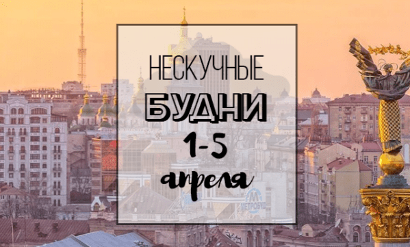 Куда пойти в Киеве на неделе? Ведь на улице заметно потеплело и, как сказал классик, запахло весной. Так чего ждать, нужно позаботиться о том, чтобы досуг был проведен с пользой и удовольствием. Так давайте разбираться, какие интересные события есть в Киеве в будни с 1 по 5 апреля. Смотрите нашу афишу мероприятий в Киеве на неделю.