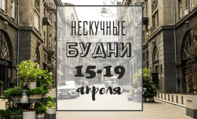 Город приготовил множество интересных событий с 15 по 19 апреля, которые помогут будням пройти ярче и быстрее. Мы выбрали мероприятия на каждый день недели для тех, кому лень отправляться на поиски самостоятельно.