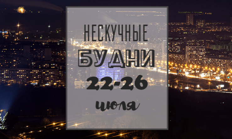 Город приготовил множество интересных событий с 22 по 26 июля, которые помогут будням пройти ярче и быстрее. Если вы до этого момента не знали, чем себя занять — сейчас этот вопрос закроется. Мы выбрали мероприятия на каждый день недели для тех, кому лень отправляться на поиски самостоятельно.