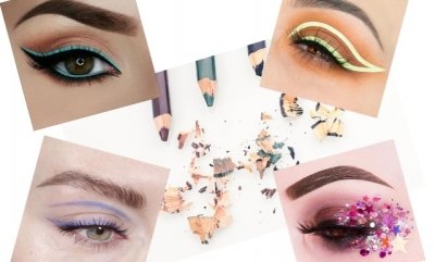 Обратите внимание что кроме основного цвета, вы можете экспериментировать с двойными стрелками. Это вообще хит, ведь таким образом мы сочетаем яркость и геометрию. Можно нанести поверх черной классической линии яркую полоску или нарисовать ярким цветом и очертить контур ресниц. Стрелки позволяют вам проявлять творчество. Например, используйте два цвета («эффект омбре»).