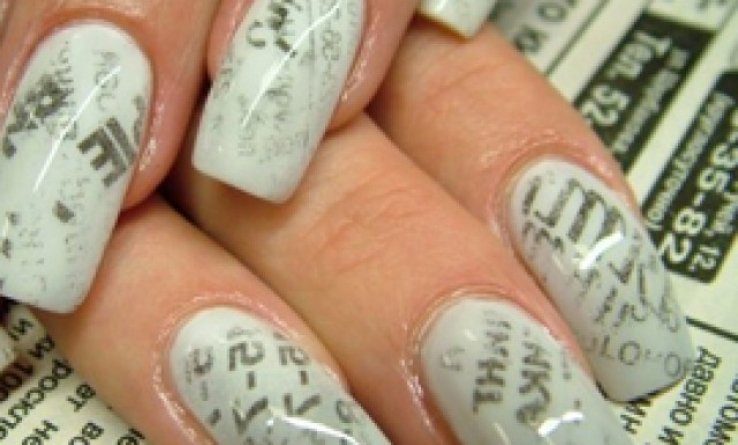 3 шаг: сразу же приложите к ногтю кусочек газеты или журнала с желаемым текстом или рисунком.