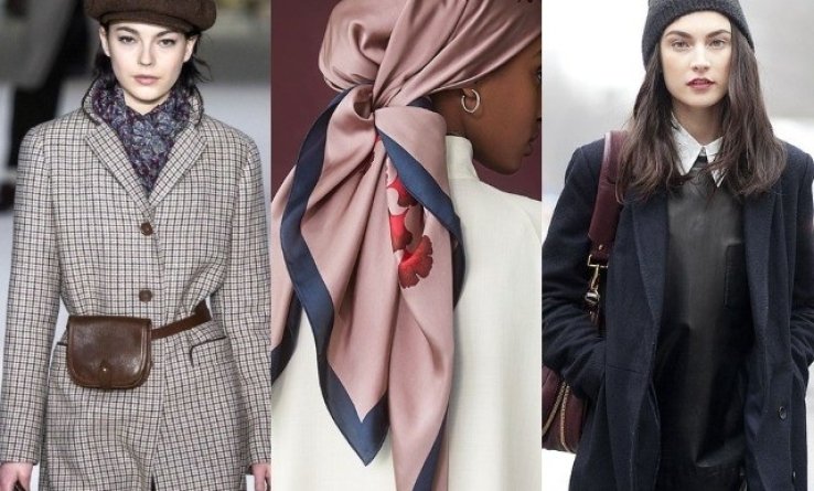 Кроме классики — шелка, рекомендуем кашемировые тонкие платки и пуховые косынки-паутинки. Они будут особенно актуальны в сочетании с кожаными куртками-косухами. Очень стильное сочетание больших платков со строгими драповыми пальто в стиле милитари. Эти аксессуары свободно накидываются на голову и повязываются так, чтобы концы располагались поверх пальто. Получается очень интересный стилистический образ.