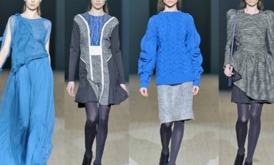 Коллекция выполнена в характерных для творчества Нади переплетениях линий и архитектурном крое. Дизайнер соединяет несколько видов тканей и текстур в одной модели и дополняет их несколькими цветами.