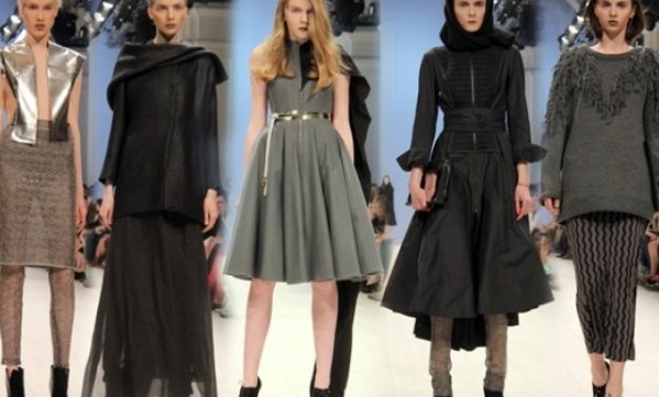 На подиуме чувствовалась эмоциональная тема прощания с прошлым, где геометрия, волнообразность и декоративность олицетворяют сильную и одновременно ранимую девушку. Что в прямом смысле подчеркивается страшной деталью - следами от снайперских пуль на висках моделей.