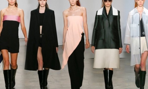 Тут мы увидели драпированные топы и жакеты с асимметричными шлейфами, смоделированные непосредственно из треугольной формы паруса. Также было много других морских элементов: сумки-сетки, металлические украшения, непромокаемые парки и массивные резиновые сапоги.