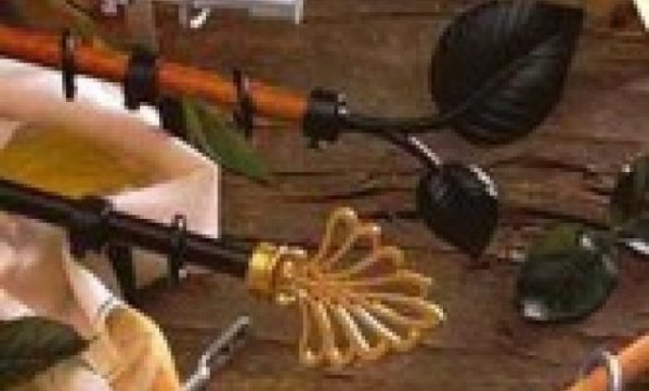 Что касается вида штанг, то они сами по себе зачастую являются настоящими произведениями искусства: кованые и псевдокованые, деревянные гладкие и крашеные во всевозможные цвета с различными эффектами (патины, растрескавшейся краски, тонирования лаком). Нередко уже в названиях коллекций содержится характеристика их стиля: "Ампир", "Готика", "Палацио Венециано", "Техно", "Хай тек".