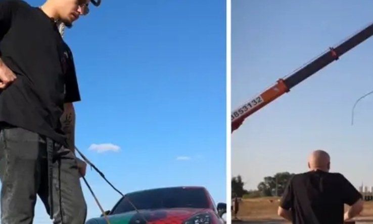 Как оказалось, молодой блоггер у себя в TikTok распространил ролик, в котором показал, как на его Porsche Cayenne 2017 падает бетонная плита. Денис решил не говорить, зачем он, именно таким образом избавился от элитного авто.