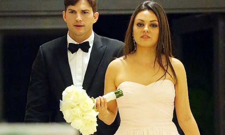 Мила Кунис пришла на церемонию бракосочетания в пудровом коктейльном платьев и с букетом белых роз. Не менее элегантным был и Эштон Катчер в смокинге. Присутствующим эта пара сама напоминала новобрачных, о чем гости не уставали говорить Эштону и Миле.