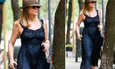 Недавно супруга Джастина Теру, 47-летняя Дженнифер Энистон прогуливалась по городу, где ее подстерегли папарацци. Хотя она и пыталась скрыть лицо за очками и шляпой, все моментально узнали в ней звезду "Друзей". Черный свободный сарафан снова подлил масла в огонь слухов о беременности Энистон. А если вспомнить слова американских врачей по этому поводу, то и вовсе можно "установить" срок беременности звезды.