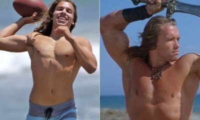 Очевидно, что Джозеф также занимается спортом, так как демонстрирует на пляже свое атлетичное телосложение, практически, как у его отца в молодости. То, что юноша растет копией звездного папы, восхищает его поклонников.