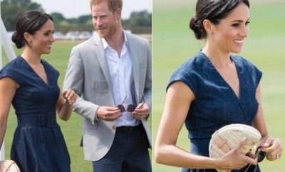 36-летняя герцогиня, которой не дают покоя заявлениями родной отец, а также сводные брат и сестра, пришла поддержать мужа на очередном матче по поло, который состоялся в Беркшире. Для нового выхода в свет Меган Маркл выбрала джинсовое приталенное темно-синее платье от Carolina Herrera с глубоким А-образным вырезом и широким поясом с квадратной пряжкой.