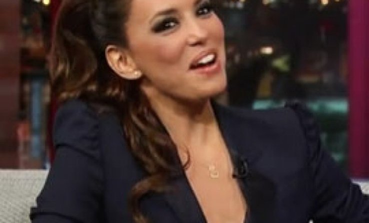 63-летний Леттерман просто остолбенел, когда верхняя пуговичка пиджака актрисы случайно расстегнулась, оказывается, она не одела под него бюстгальтер. Лонгория немного смутилась, рассмеялась, но быстро исправила положение, застегнув пуговицу.