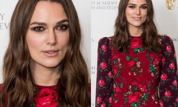 Для мероприятия Найтли выбрала яркий образ — красное платье с цветочным принтом от бренда The Vampire´s Wife и черные лакированные балетки.