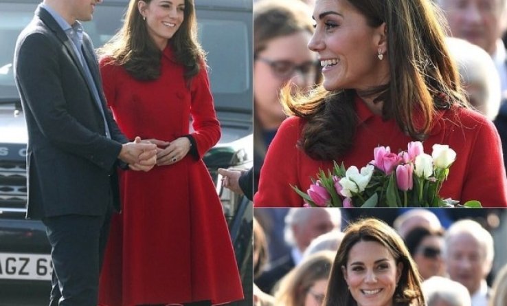 Для нового выхода в свет Кейт Миддлтон появилась в красном пальто от Carolina Herrera (кстати, недавно этот бренд предпочла и Меган Маркл в Марокко).