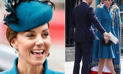 Для нового выхода в свет Кейт Миддлтон, которая теперь будет менять стиль, надела яркое бирюзовое пальто от Catherine Walker и шляпку от Rosie Olivia ему в тон. Также образ жены принца Уильяма дополнили туфельки на каблуке от Emmy London, темно-зеленый клатч, а из украшений — серьги от Kiki Classic и колье Eden из белого золота.
