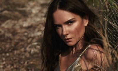 В фотосессии она предстала роковой красоткой: как в сплошном купальнике цвета ультрамарин, так и раздельном хаки она похвасталась невероятной фигурой.