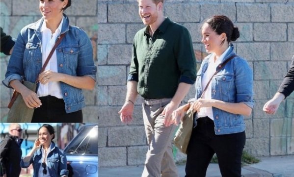 Для появления на публике с такой необычной локацией — на пляж Монвабиси — Меган Маркл выбрала белую рубашку из своей капсульной коллекции, презентация которой недавно состоялась, джинсовой куртке Madewell, черных джинсах и коричневых лоферах.