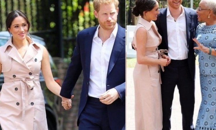 Новое мероприятие — новый наряд. Меган Маркл успела переодеться, и на встрече с именитой женщиной появилась в светло-бежевом платье-тренче, в котором ранее уже появлялась на публике. Также Мэг выбрала замшевые лодочки в тон. Жена принца собрала волосы в низкий небрежный пучок.