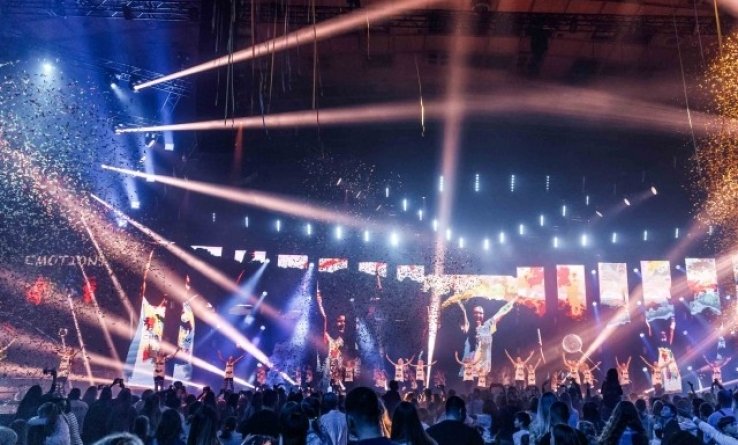 На шоу было множество интересных номеров, которые сопровождались световым шоу, мыльными пузырями, пиротехникой, а также миллионом конфетти и 15000 воздушных шариков!