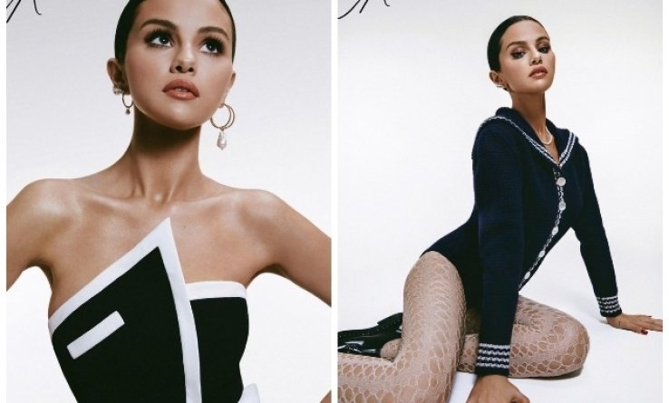 На новых снимках Селена позирует в твидовых мини-платьях, костюмах, расшитых цветами, соблазнительных боди и вязанных колготках. Элегантные образы певицы дополняют — крупные украшения, строгая прическа и безупречный макияж.