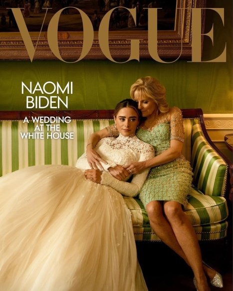 Джилл Байден и ее внучка Наоми, которая неделю назад вышла замуж, стали главными героинями нового выпуска американского издания Vogue. Неудивительно, что свежий номер журнала был посвящен свадьбе Наоми, а на основном фото невеста появилась в роскошном свадебном платье от Ralph Lauren.