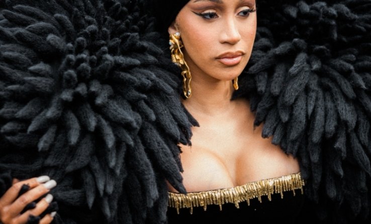 Хип-хоп исполнительница Cardi B выбрала для модного выхода черный ансамбль от бренда Schiaparelli.