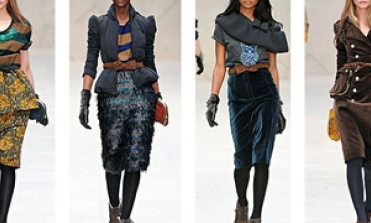 Некоторые модели отчетливо передают дух 30-х годов: женственные силуэты, легкие военные акценты в виде металлических пуговиц и погонов, бархат, юбки-карандаши с басками и воланами, тренчи. Основные детали коллекции – пояса-бантики подчеркивающие талию и изображение сов. Не обошлось в коллекции и без знаменитых кепи Burberry и вместительных сумок.