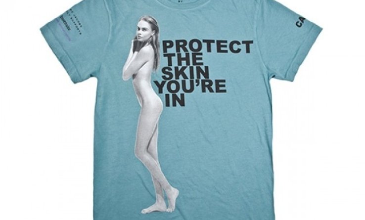 20-летняя популярная модель Кара Делевинь снялась обнаженной для линейки футболок под лозунгом Protect The Skin You're In.