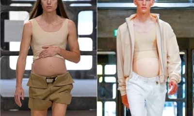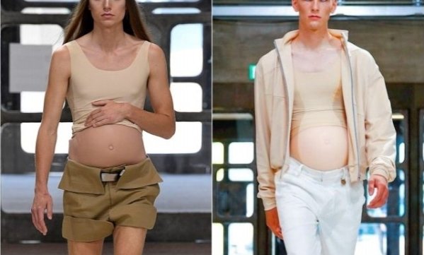 Накладные животы для коллекции Ксандера Чжоу создала знаменитый визажист Исамайя Френч, сделав их максимально реалистичными. Впрочем, сам дизайнер абсолютно реально верует в то, что мужчины способны становиться матерями, так как на официальном сайте бренда написано: «Мы готовы приветствовать будущее мужской беременности».