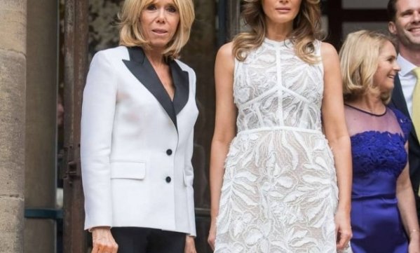 И за это она сегодня принимает многочисленные комплименты. Но также модные критики с восторгом оценивают и образ первой леди Франции Бриджит Макрон, с которой Мелания, если верить слухам, очень дружна. Жена Эммануэля Макрона осталась верна любимому бренду Louis Vuitton, выбрав брючный костюм из новой коллекции бренда.