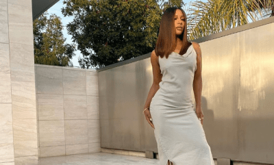 Американская звезда Victoria Monét, получившая широкую популярность после совместного клипа с Арианой Гранде в 2019 году, опубликовала несколько фото в своем Instagram, на которых певица запечатлена в наряде авторства Ирины Романенко.