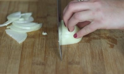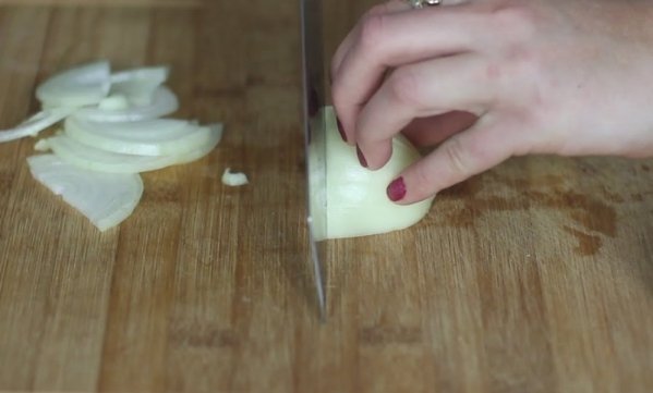 • Во время нарезки периодически промывайте нож под водой. Так с него смывается луковый сок, который заставляет нас плакать.