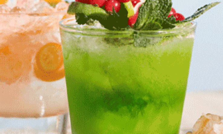 Предварительно охладите емкость в холодильнике. Затем налейте текилу, сок лайма, кисло-сладкий микс и сверху выложите сорбет и кусочек лайма.
