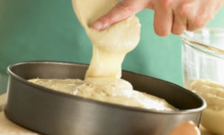 Готовое тесто аккуратно переложите в форму и выпекайте при температуре 180 градусов, а после того как он начнет золотиться, переключите на 160 градусов. В среднем выпекать нужно 30-40 минут.