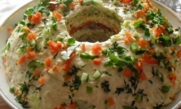 Салат "Кольцо" - отличное блюдо и для праздника, и для будничного ужина.