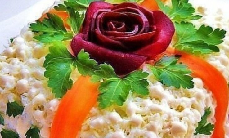 Нежный салат "Рафаэлло" станет украшением любого праздничного стола.