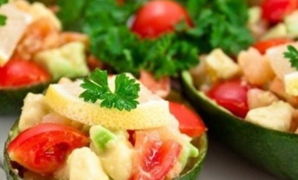 В качестве начинки подойдет любой салат, в составе которого есть авокадо.
