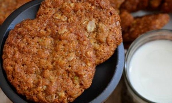 Перемолоть на блендере сухари и орехи. Смешать с овсяными хлопьями, мукой и сахаром. Масло, мед, соду (погашенную уксусом), воду, специи положить в сотейник и прогреть, до тех пор, пока масло не растопится. Не кипятить.
