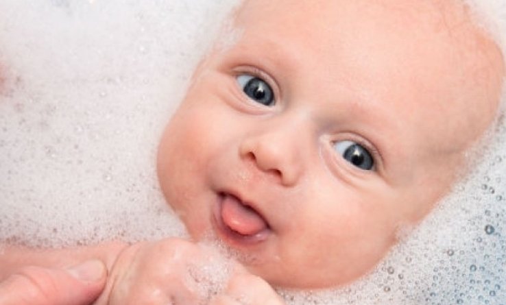 Держите голову малыша так, чтобы в его ушки не попадала вода. Начните купание с умывания новорожденного. Оботрите личико отжатой губкой, без мыла. Затем вымойте тельце новорожденного со специальным средством для купания (пенка, гель, детское мыло). Головку малыша вымойте с мягким детским шампунем. Использовать шампунь рекомендовано не чаще одного раза в неделю, а средства для купания – не чаще 2 раз в неделю.