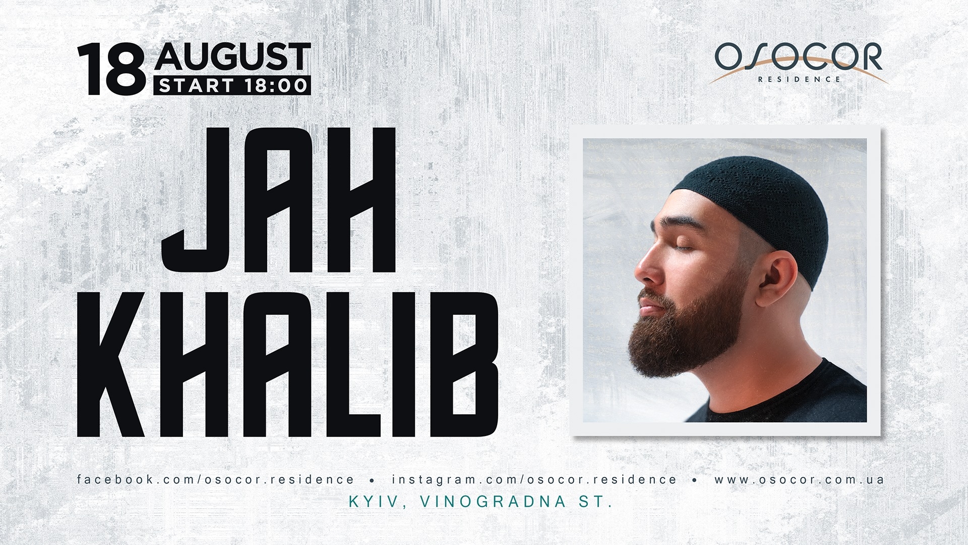 Його нашуміла платівка "Выход в свет" була написана в українській столиці, адже саме тут хіп-хоп артиста відвідують муза і творче натхнення. Автор безперечних хітів "Лейла", "Медина", "Мамасита", "Если че я Баха" Jah Khalib 18 серпня запалюватиме в Osocor Residence — унікальній столичній локації, що створена для повного релаксу й музичної насолоди.
