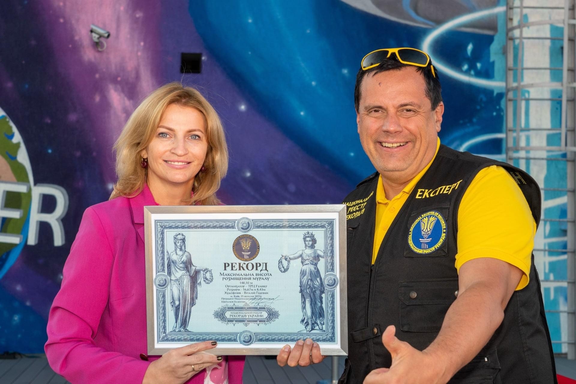 Навесні художники-муралісти стали рекодсменами України зі створення найдовшого історичного муралу, а тепер встановили новий офіційний рекорд. Так як арт-об’єкт намальований на висоті 140 метрів експерт по рекордам України Віталій Зорін зафіксував та надав документ який засвідчує, що мурал намальований на найвищій висоті в Україні. Мурал під назвою "Космічний Всесвіт" має довжину 16,67 метри та висоту 8,43 метри.