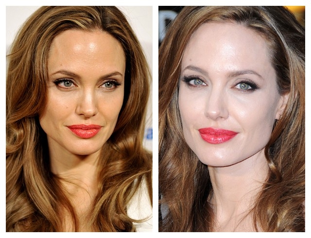 В 2012 году Анджелина активно начинает использовать яркие помады, выделяя свои большие губы. К слову, в это время у Джоли наконец-то отрасли натуральные и красивые брови.