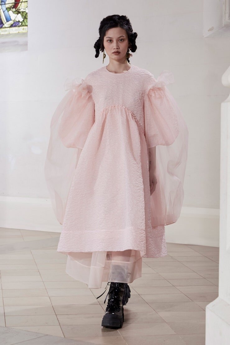 23 февраля в Лондоне прошел показ новой линейки Simone Rocha. Модное шоу удивило зрителей не только дивными нарядами, но и необычной локацией — модели дефилировали в городской церкви Сент-Джонс.