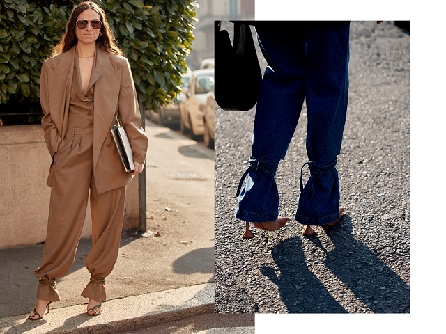 Зажимы и зауженность на щиколотках также появлялись на улицах Милана.