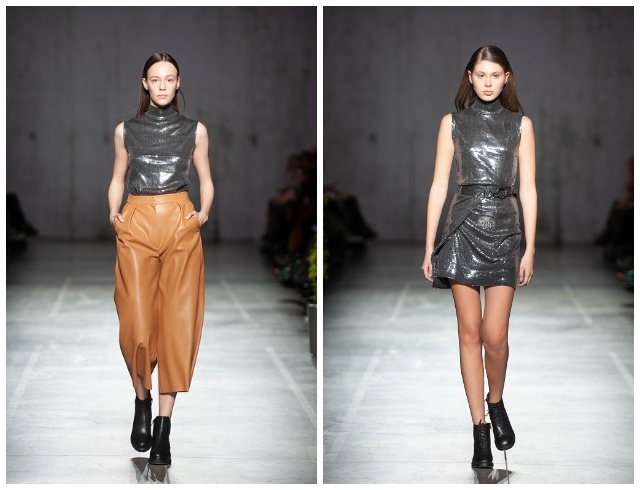Стальные оттенки и металлический блеск — главные символы Нового 2021 года. Украинский бренд Vorozhbyt&Zemskova предлагает стильные варианты: металлическое платье или же топ стального оттенка в паре с кожаными брюками. Берите на заметку!