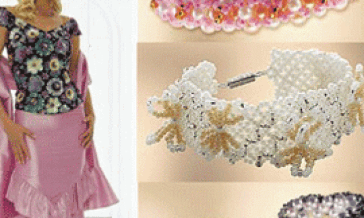 с использованием бусин под жемчуг; сейчас мода всё дальше отходит от классических белого и молочного цветов бусин-жемчужен, предпочитая им розовые, серебристые и серые тона.