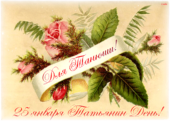 Если хотите выделиться из общей массы поздравлений, выбирайте на День Татьяны картинки в виде гифок. Это фото с разными эффектами, как правило, яркие и мигающие, создающие атмосферу праздника. Картинки с Днем Татьяны поздравления анимационные — далее.